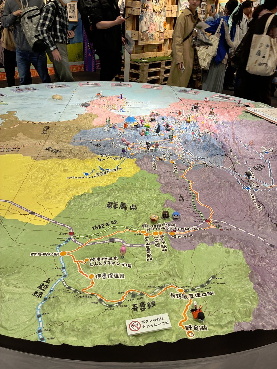 ゆるキャン△10周年記念展に行ってきました! 展示されてるイラストはデカくてきれいだし 巨大ジオラマだけじゃなくて随所に小物も展示されてて 作品らしさいっぱいのイベントで満足 また行きたくなってきたなぁ身延 #ゆるキャン10th展 pic.x.com/wndl9kKIJw x.com/yurucamp_ex/st…
